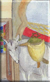Jussif lo salutava quando, all'alba Ibraim lo portava via con le borse di paglia larghe sui fianchi, per usarlo nel trasporto della menta, ed era felice al suo ritorno. Profumava di menta, di fieno e di caldo umido. Così Jussif si svegliò un po' triste e pensando all'asino si preparò per uscire. Era il suo terzo giorno di scuola e già conosceva la strada da percorrere svelto al mattino. In questa città a quest'ora, la strada odorava di pane, ma solo sull'angolo vicino alla scuola, e per il resto di umido. Diverso dall'odore di frittura e di menta a cui era abituato. E i compagni odoravano di detersivo e dentifricio, non di olive e montone. La classe odorava di ...niente, e non di stuoie e di legno come quella di prima. Le cose nuove da imparare, oltre agli odori, dovevano essere una quantità inimmaginabile, questo l'aveva capito subito al suo arrivo Jussif, ma non lo preoccupavano. Lui, pensava, poteva mettere insieme gli odori di lì e di qui e ricordarli tutti, dunque avrebbe potuto mettere insieme suoni, parole e qualsiasi altra cosa. A scuola arrivarono i compagni e le compagne. Arrivò anche la maestra ed iniziò la lezione. Raccontava di un popolo antico che combatteva con lance e scudi ed aveva occupato anche l'Africa: i Romani. Jussif vedeva squadroni compatti di uomini armati, con tuniche ed elmi, sulle illustrazioni del suo libro. Camminavano nella spianata al di là delle mura della città... e poi si accorse che dall'altra parte delle mura c'era la sua città, c'erano arabi scalzi e con i turbanti e piccoli cavalli scalpitavano dietro le mura.